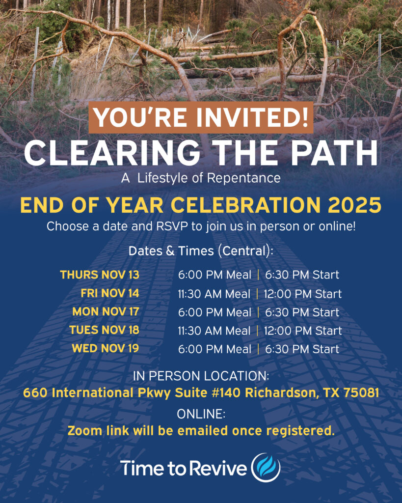 Join us for Clearing the Path: A Lifestyle of Repentance, our End of Year Celebrations. Together, we’ll reflect, give thanks, and seek the Lord for the new season ahead.